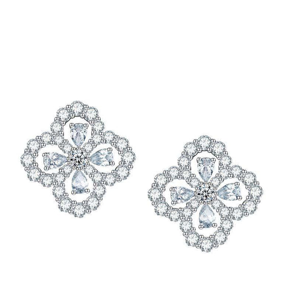 【#185 Clover Earring】Moissanite earrings with 925 Sterling Silver Anniversary Auspicious Wedding Engagement Jewelry Synthetic Moissanite
