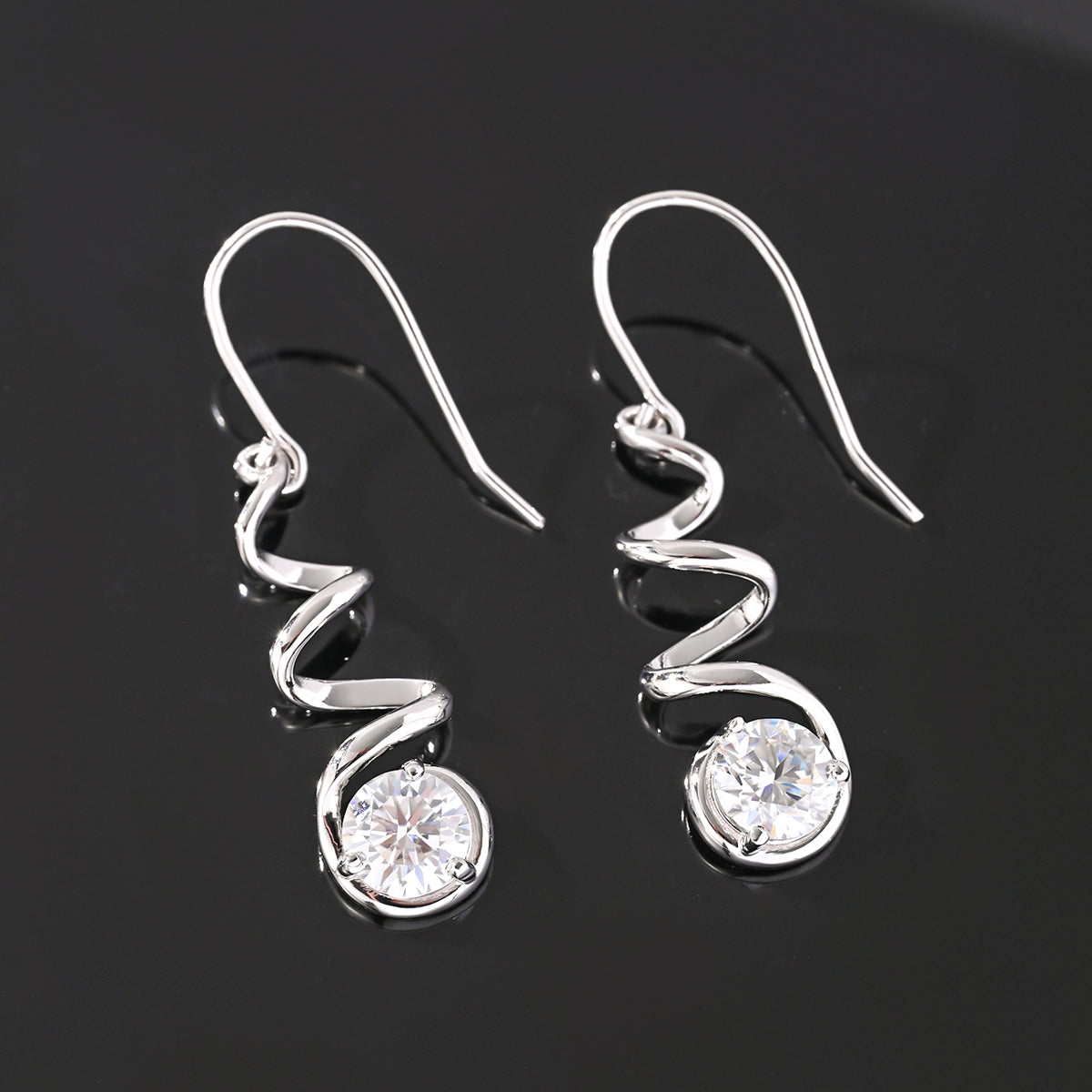 【#223 Ripple】Moissanite earrings with 925 Sterling Silver Synthetic Jewelry Moissanite