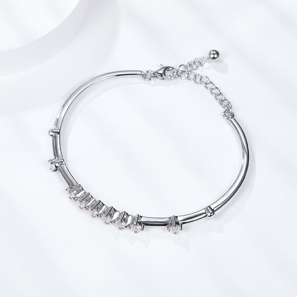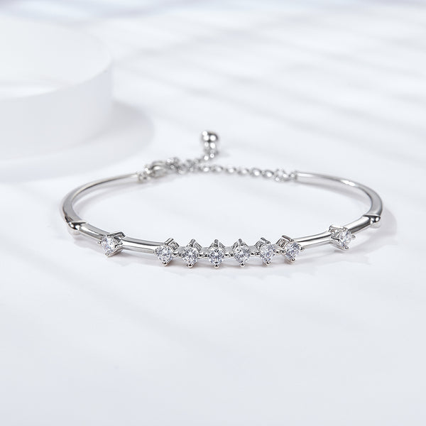 【#121 Jasmine Bangle】Moissanite Bangle with 925 Sterling Silver Daily Gift Auspicious Engagement Wedding Woman Synthetic Moissanite