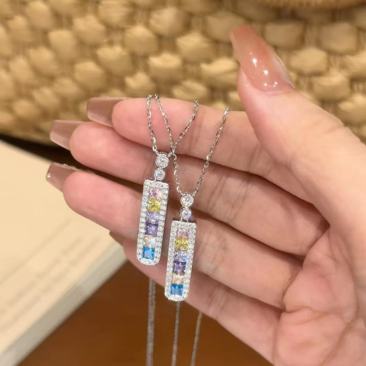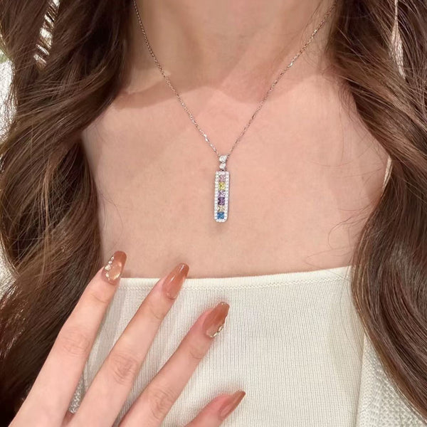 【#199 Gemline】cubic zicon main stone and side stone moissanite necklace with 925 Sterling Silver women dainty link chain minimalist fashion jewelry gift synthetic moissanite