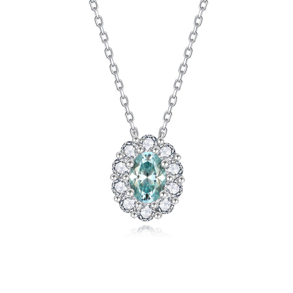 【#163 Ocean Grace】Oval Cut Moissanite with 925 Sterling Silver necklace Jewelry Synthetic Moissanite