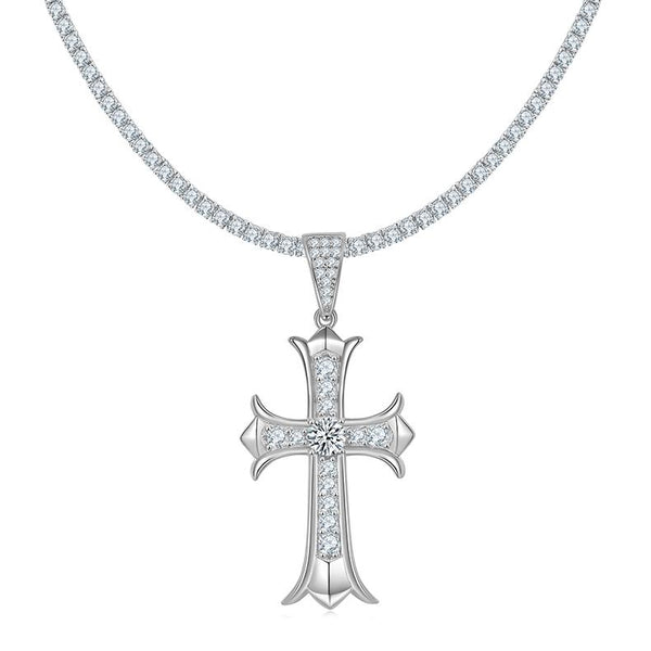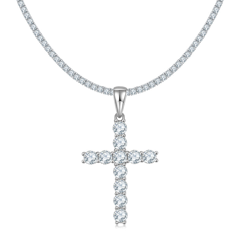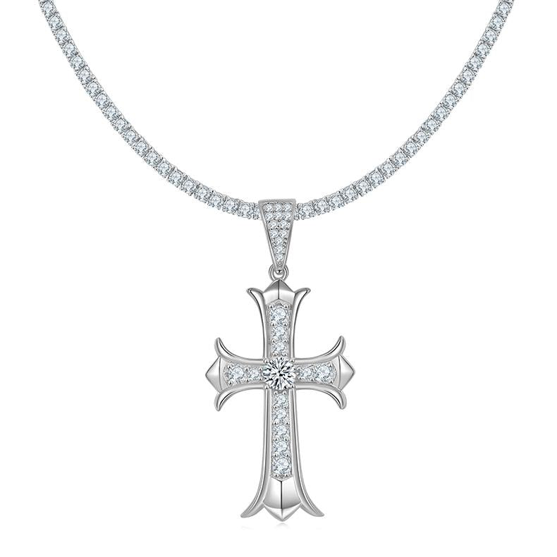 【#61 Cross】Moissanite necklace with 925 Sterling Silver