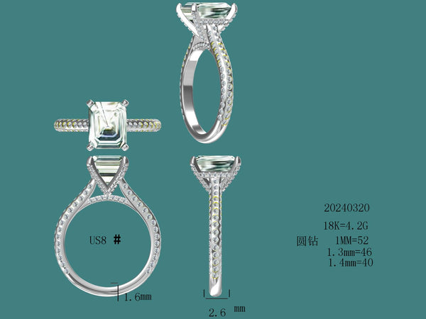 Customized Radiant cut Moissanite ring