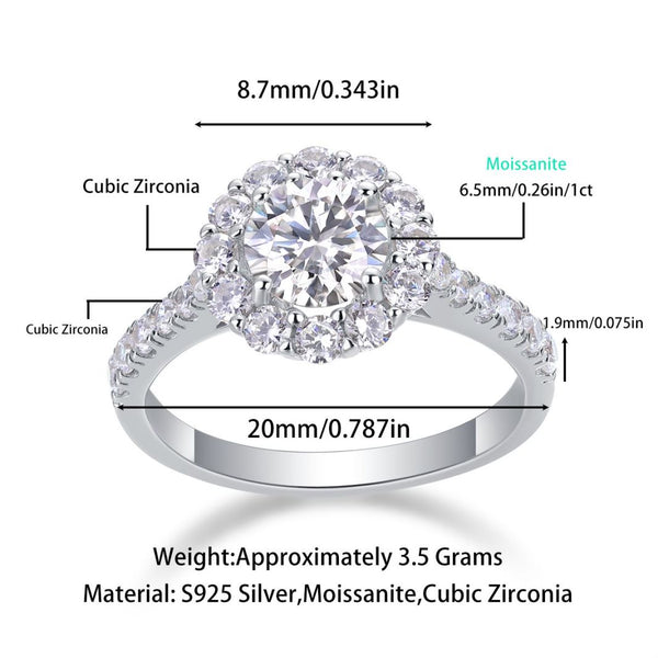 【#01 Radiant Halo】1 Carat Moissanite Rings High Quality with Daily Gift Auspicious Rings Wedding