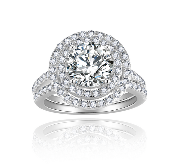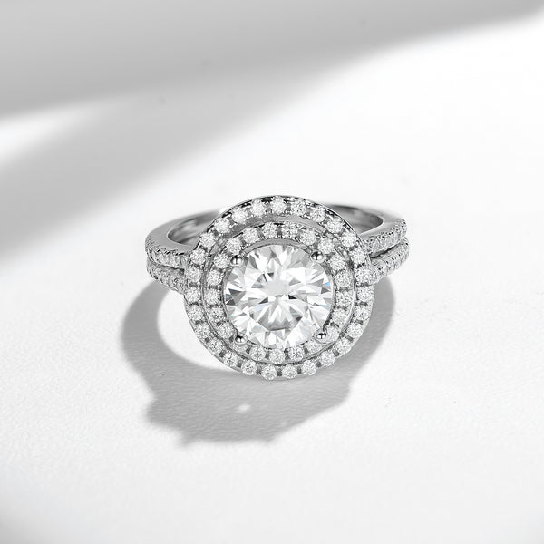 【100 shine】Full Moissanite main stone and side stone rings with 925 sterling silver Engagement Anniversary Wedding Jewelry Synthetic Moissanite