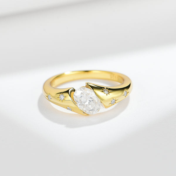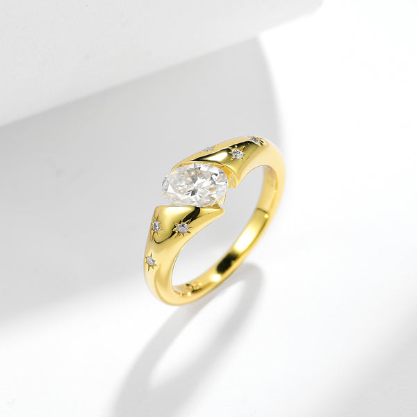 【#107 Tina】Oval Cut Full Moissanite main stone and side stone rings with 925 Sterling Silver Engagement Gift Jewelry Synthetic Moissanite