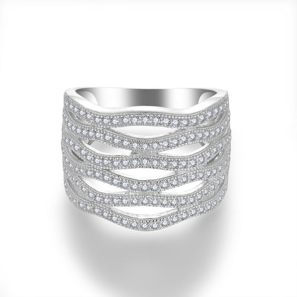 【#116 Dazzle Weave】Moissanite Ring Band with 925 Sterling Silver Synthetic Moissanite