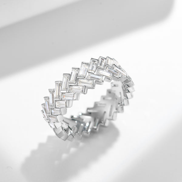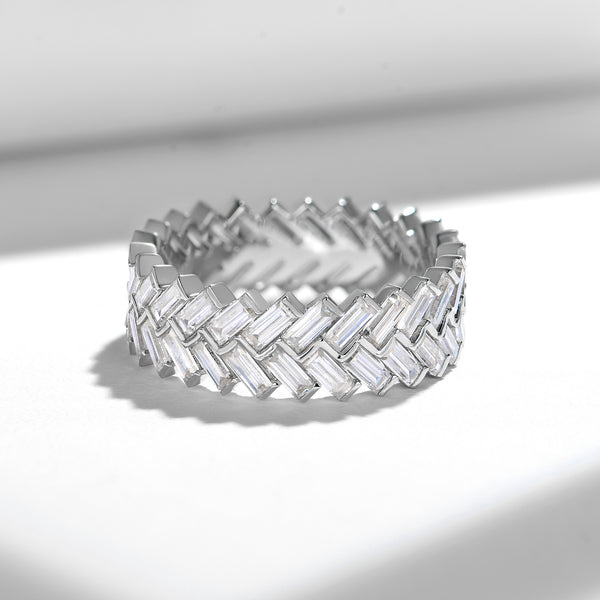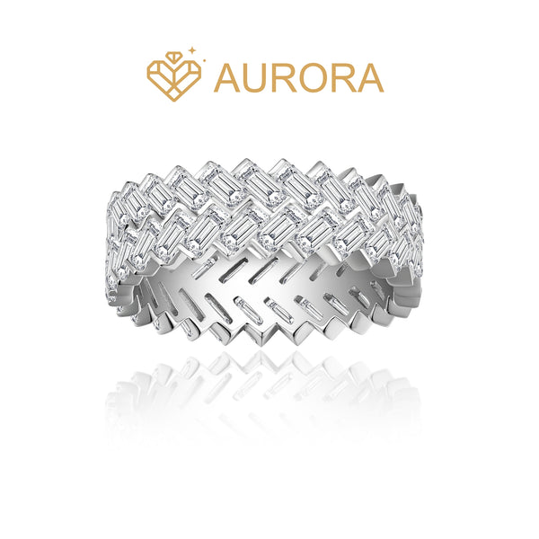【#127 Lattice Glow 】Moissanite rings with 925 Sterling Silver Daily Anniversary wedding ring band Synthetic Moissanite