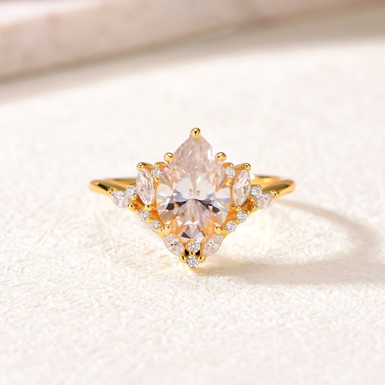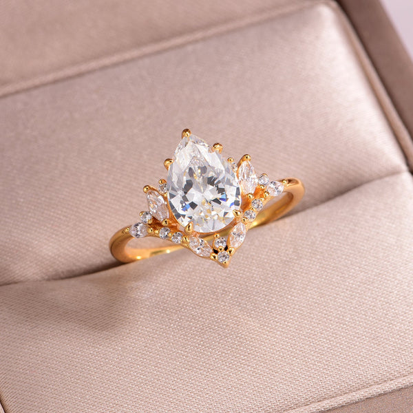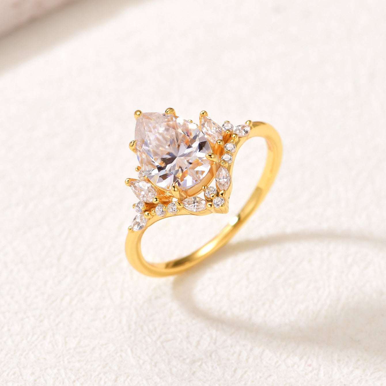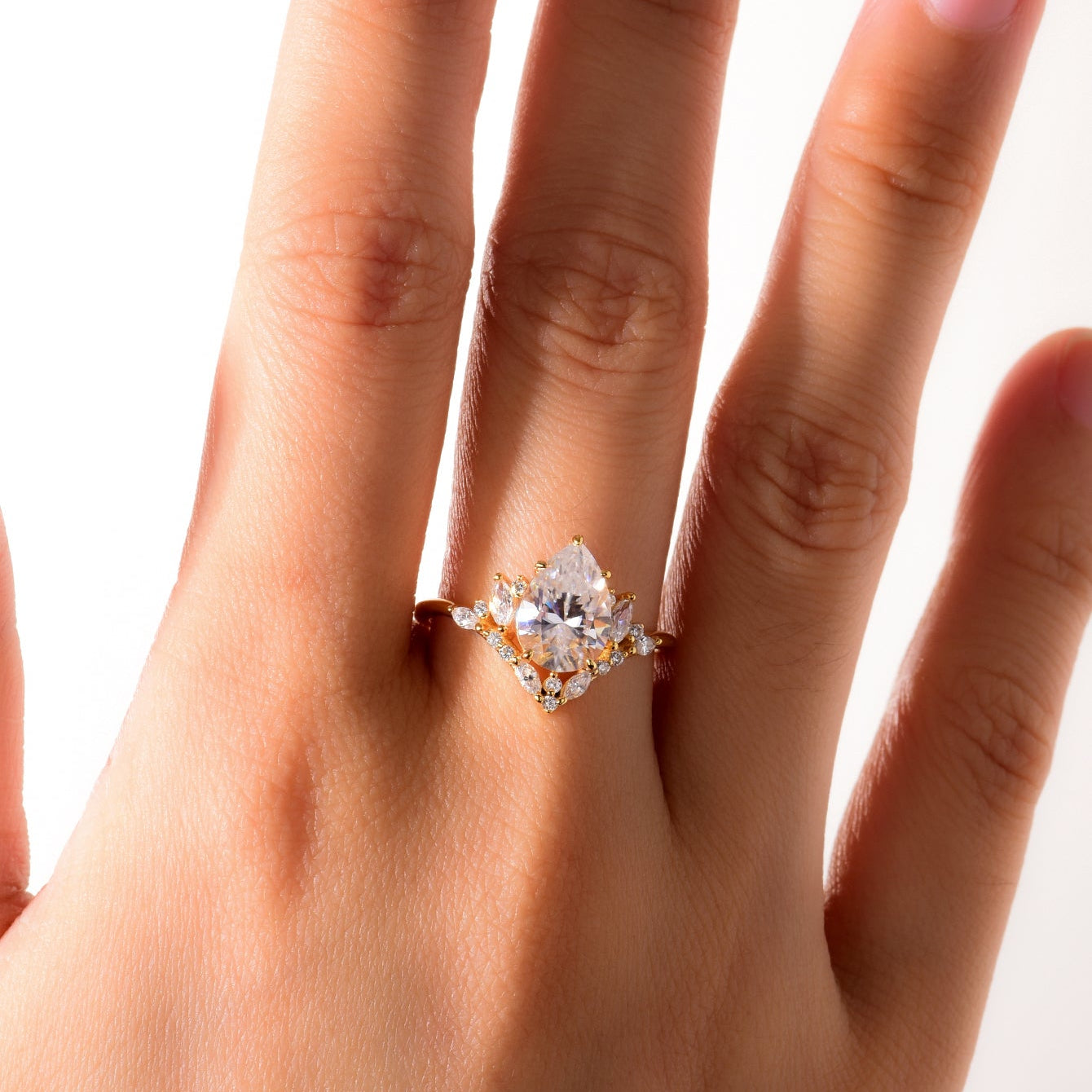 【#161 Lvy】Pear cut Moissanite Ring Anniversary Auspicious Wedding Engagement Jewelry Synthetic Moissanite