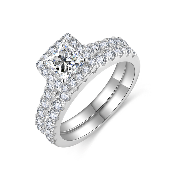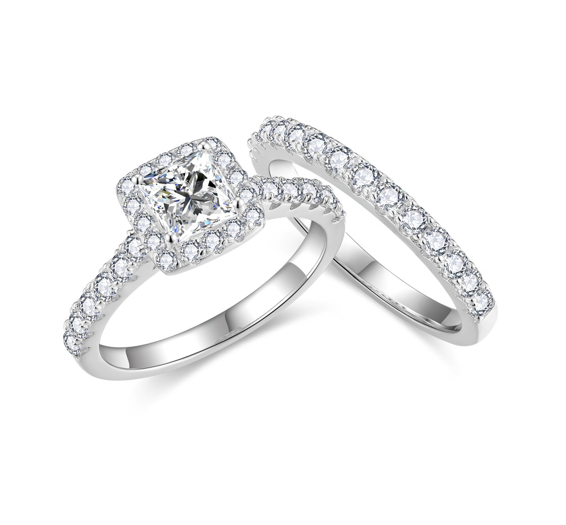 【#164 Regal Shine】Full Moissanite main stone and side stone Ring with 925 sterling silver wedding Ring Synthetic Moissanite